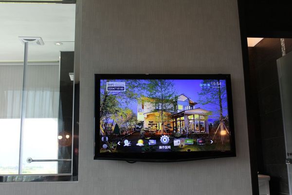 電視掛在正對床的牆上,有數位電視台、愛藝奇、藍光電影、LIVE TV等好多可以選。