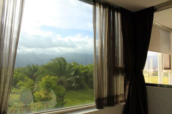 大窗戶對出去就是片片稻田,延伸到遠方的中央山脈,深淺層次的綠,景緻非常舒服。