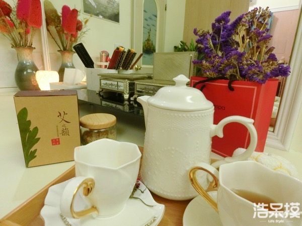 一進門後,美容師會先提供茶點服務,這時候可以先短暫休息一下,如果是風塵僕僕地前往的話,或者是也可以先拍個美照休息一下之類。