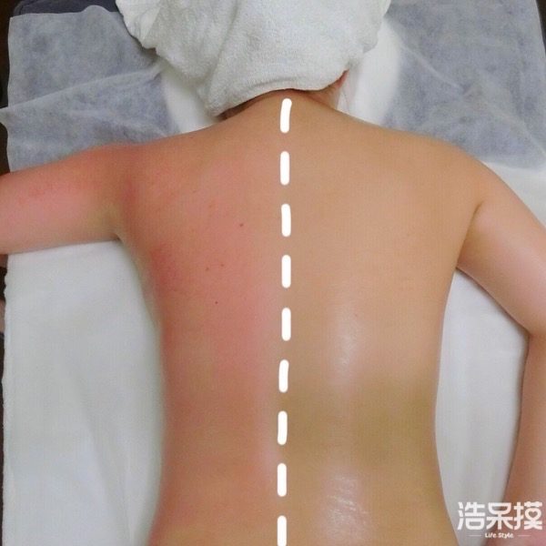 左半邊已經手技按摩 + 體雕儀按摩結束後的差別。