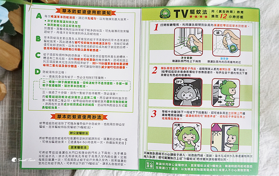 所謂TV驅蚊法就是讓你利用看電視的廣告時間來噴灑,如不看電視的人也沒關係,一樣可以這樣抓時間喔~