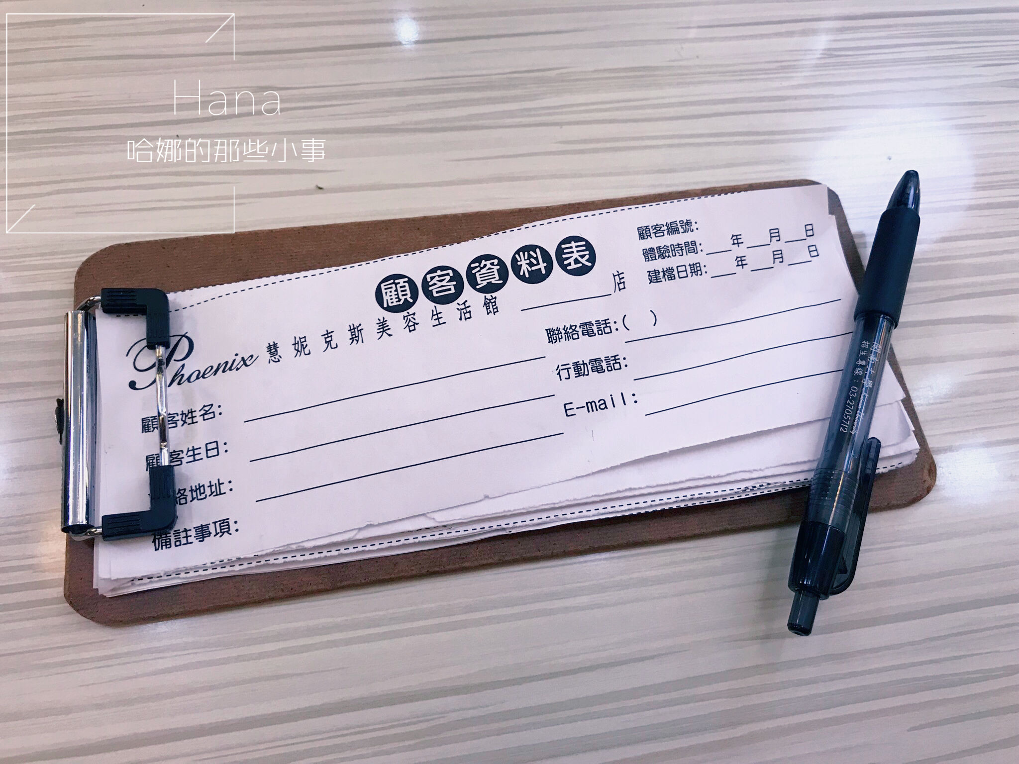慧妮克斯美學館會讓我們填寫基本的顧客資料表,