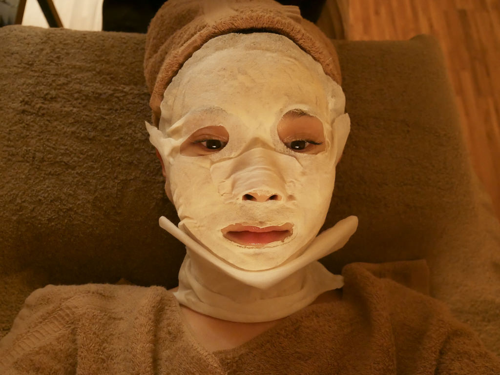 除了用手也用了器材輔助刮臉拉提 , 力道反而更均勻