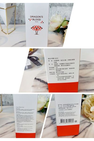 在外盒底部及瓶底則可以看到《 龍血化妝水 》的