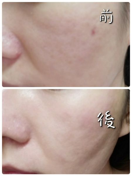 可以看到前後的比對,毛孔,痘疤跟泛紅的地方都明顯改善