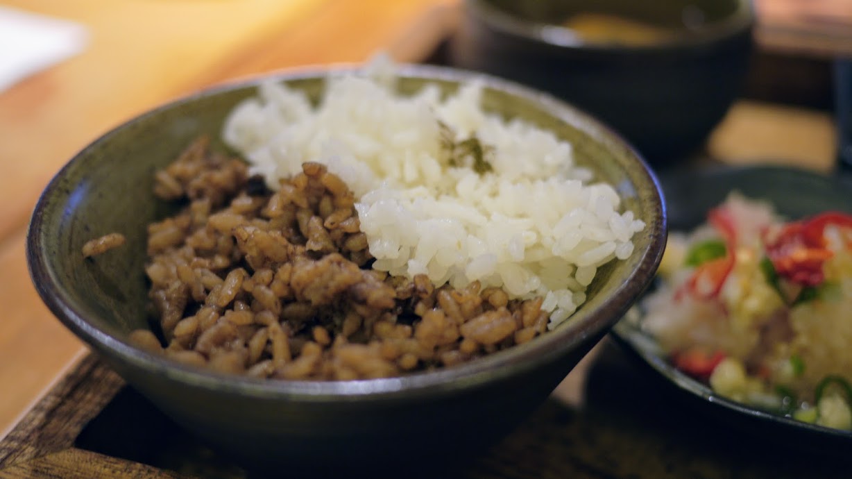 紅茶飯+白飯雙拼 相當特別,也是別處吃不到的品項