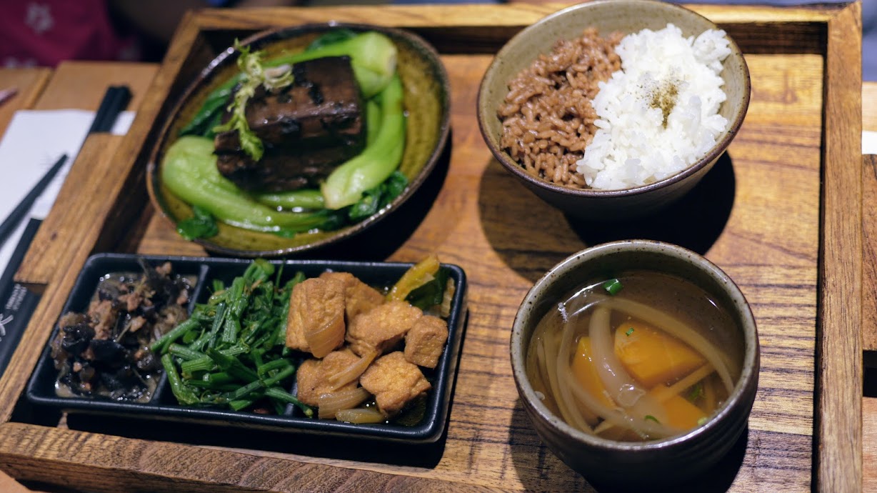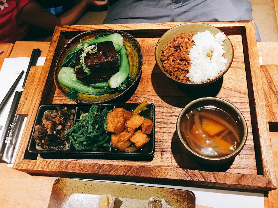 無茶令人俗無肉令人瘦,既然來喝茶自然要來點一塊東坡肉啊! 這是我家傅大人這次點的餐,實在太令人驚豔了 平常只能在電視醬油廣告裡頭出現的東坡肉,居然這裡就點的到,當然要點來嘗嘗鮮才是! 套餐含主菜、紅茶飯、湯品、配菜、蓋碗茶 要追加的也行! 喝茶天紅茶飯/白飯30元 每日湯品30元 小菜套組60元 蓋碗茶品60元