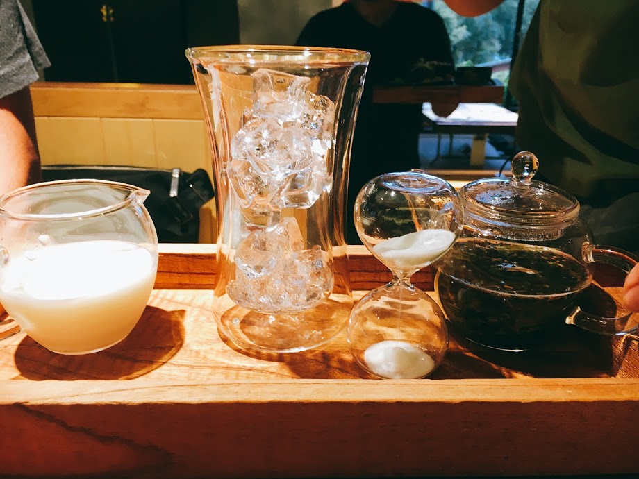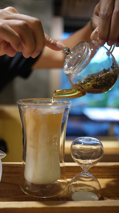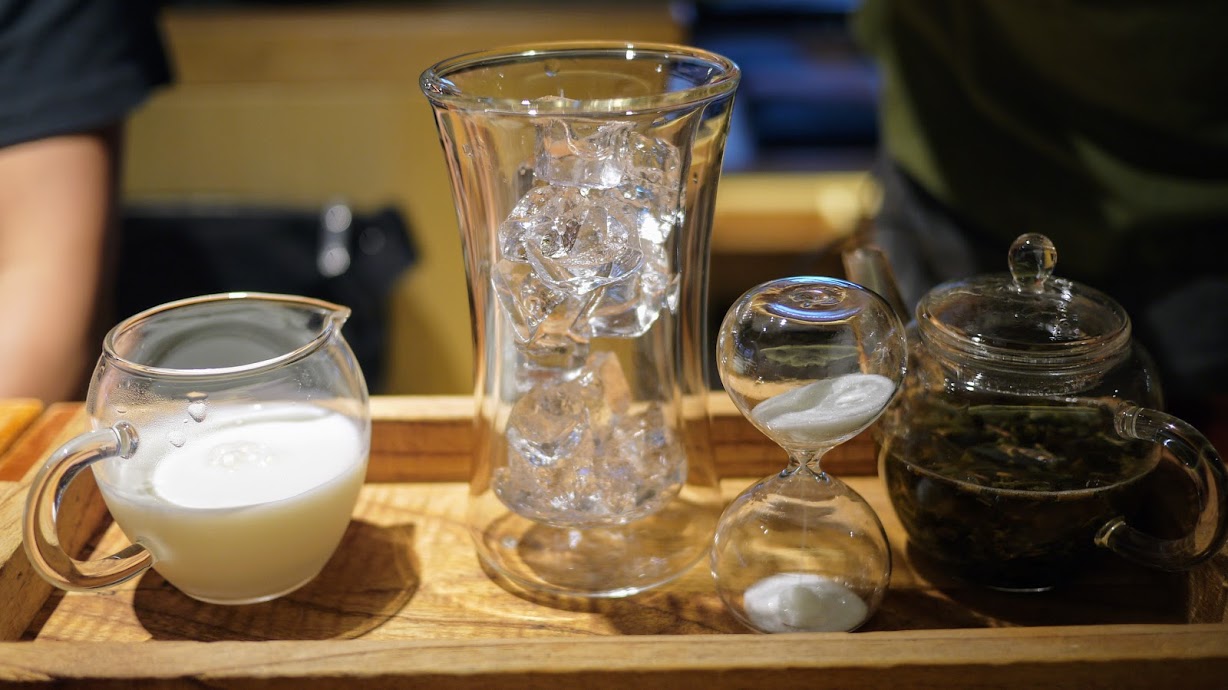 頭一回喝茉莉奶綠這麼搞剛的啦! 上了一壺綠茶、鮮奶、還有冰杯以及一個沙漏 沙漏漏完時才可以開始手工DIY茉莉奶綠喲 繼續往下滑下去會出現DIY說明 在等沙漏的時光先來看一下其他餐點