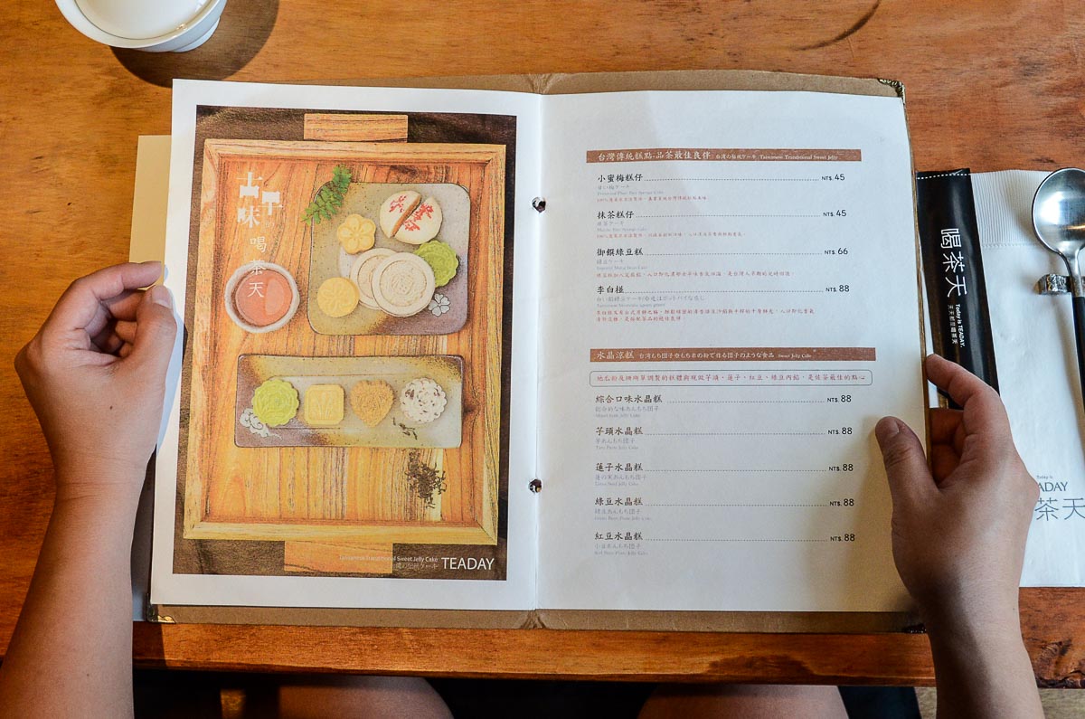 喝茶天的菜單是用翻面的,一頁一頁頗有翻書的感覺。餐點用中日英3種標示方式蠻有國際化視野。