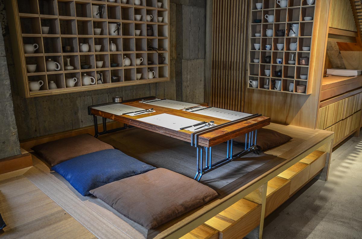 我喝茶特別注重舒服,全店只有唯二盤腿而坐的榻榻米座位,所以我選了可看窗外風景的位置,下方的抽屜是放鞋子用的。