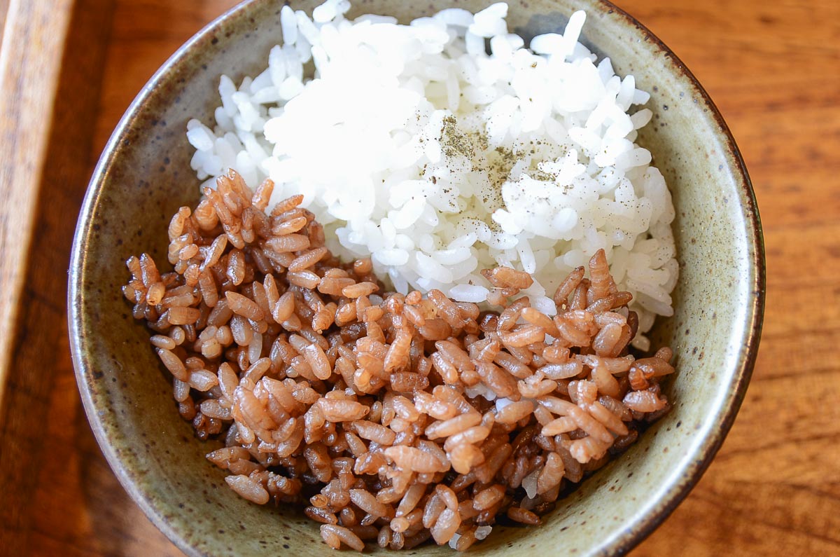 傳統日照脫殼當季白米,這讓我想到小時候常見到金黃稻穗舖滿稻埕享受日光浴的畫面,每粒白米都是30天內去殼後煮成的白飯和紅茶飯,被陽光曬過的米現在聽到覺得蠻稀奇,新米的光澤、香氣、口感和舊米就是不一樣,喝茶天把含水度高的新米煮到粒粒分明、Q彈口感。