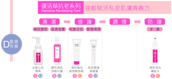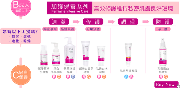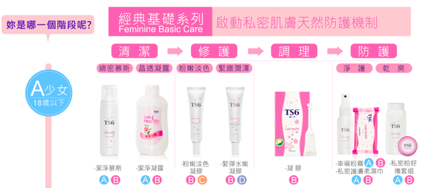 TS6 官網有「日常」「特殊」「孕期」私密保養步驟教學