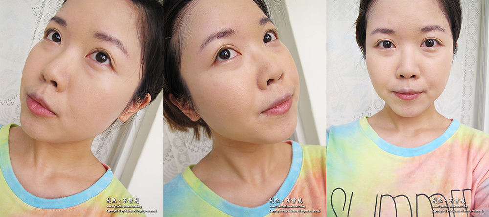 對於比較容易臉部出油的我來說,晚上妝感看起來泛油光比較多,包含T字部位及兩頰都明顯泛油光