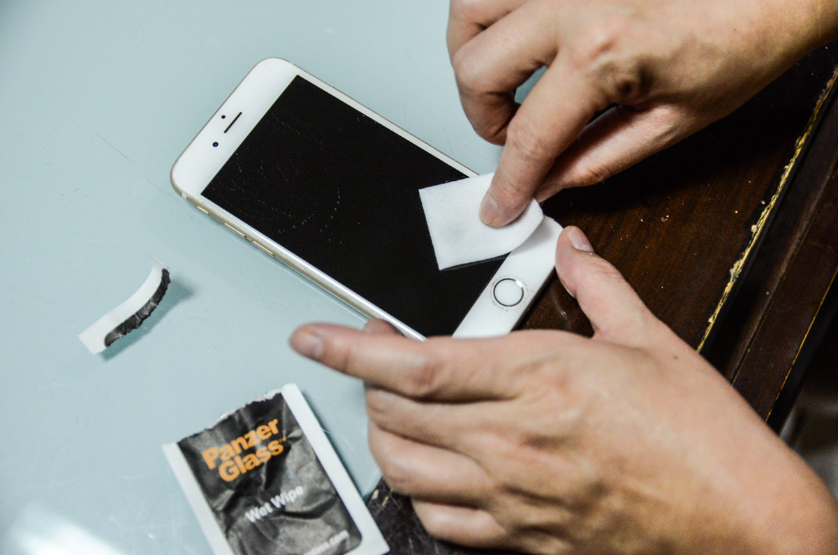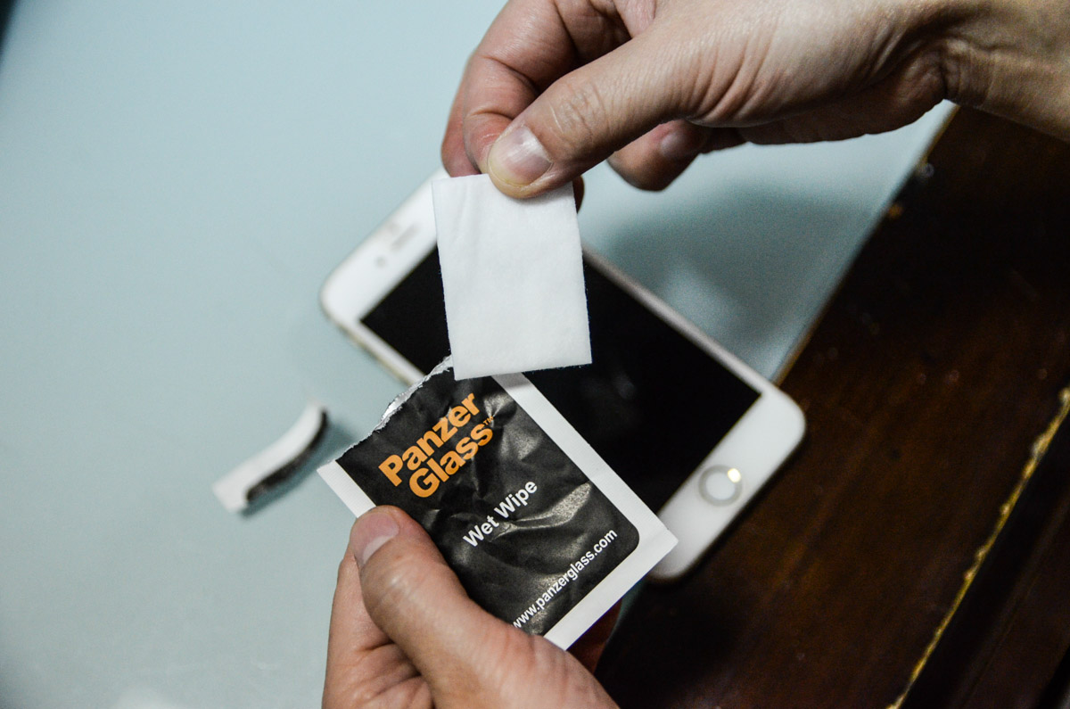 舊的保貼撕下後,我習慣先用酒精棉片擦手機畫面,所以我會先拿酒精片出來。