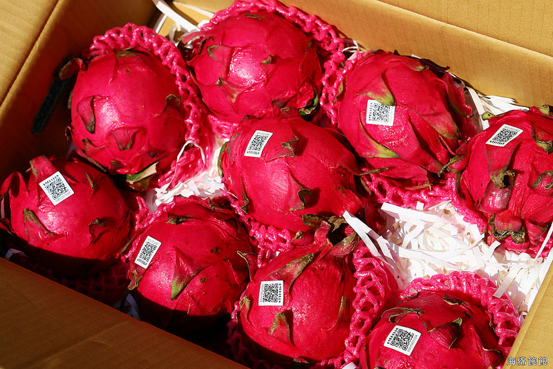 每顆火龍果上都貼有品牌的 QR code
