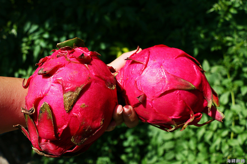 巨大的火龍果抱起來還頗有重量呢...