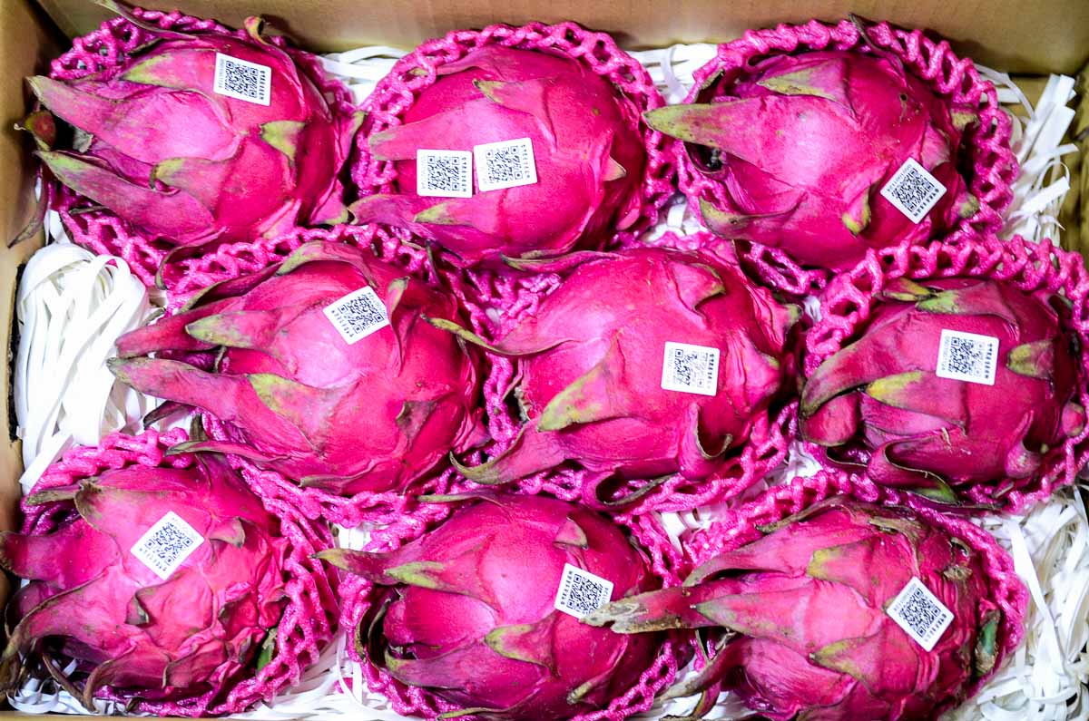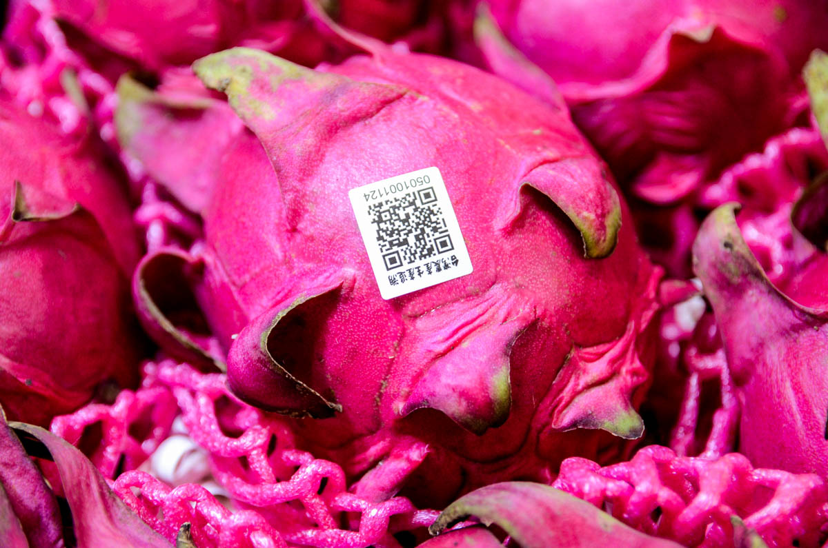 每顆紅龍果上都有一枚「台灣農業生產追溯」QRCODE貼紙,掃進去可以看到生產追溯編號、生產者聯絡方式和農產品簡介,連水果都要知道是誰生產才是負責任的表現。