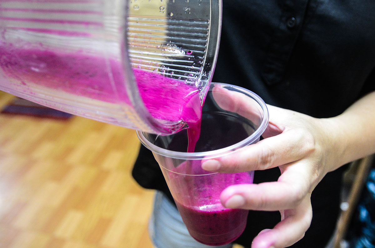 火龍果用喝的也可以,切塊火龍果加一點點碎冰去打也可以加入牛奶或是優格打成果汁,吃過台南仁波霸紅龍果後,發現他不像一般市售紅龍果有一股粉粉臭臭的藥味,台南仁出產的紅龍果相當香甜宜人,不加糖、只加水就能喝得到原汁原味。