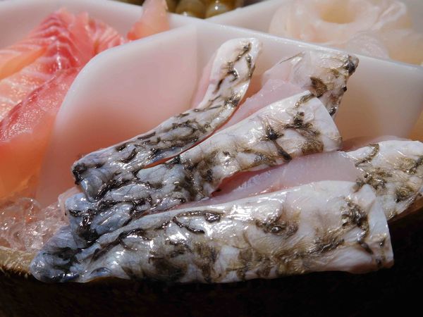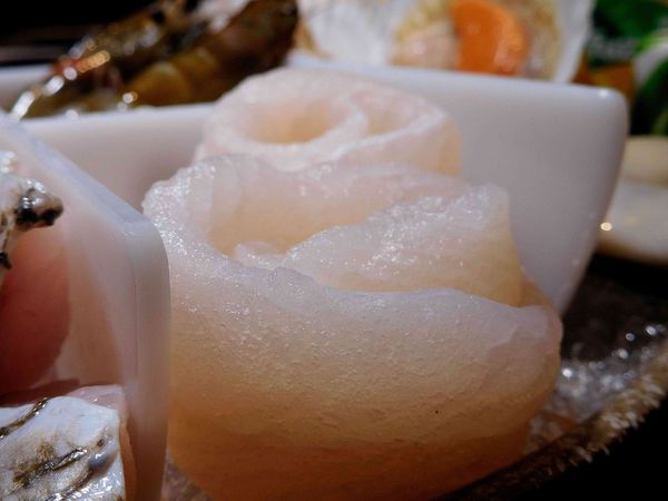 魚:鱸魚片、雪花魚卷、曼波魚皮、鯛魚片、沙腸魚、曼波魚肉、虱目魚皮、青衣魚片。