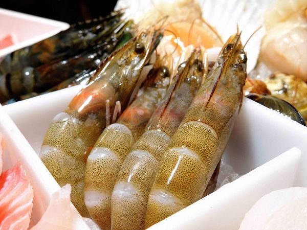分別為 1.生蠔清肉,產地韓國 2.大扇貝,產地日本 3.蛤蜊 4.白蝦,南美白蝦 5.草蝦,新品種西非草蝦