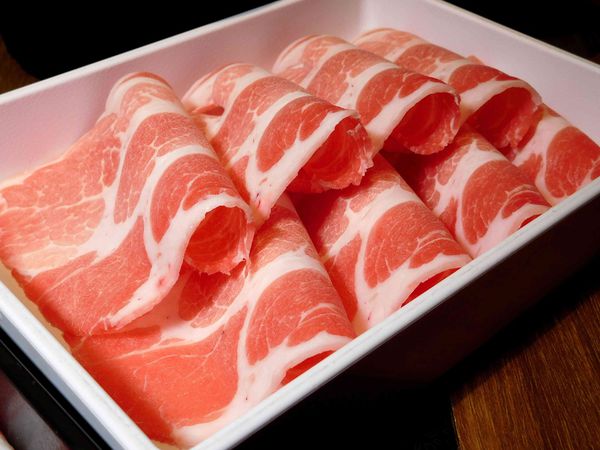 梅花豬是取豬的肩胛部位 ,肉質的油花比例分布的非常適中 ,口感QQ真心好棒呢 !!