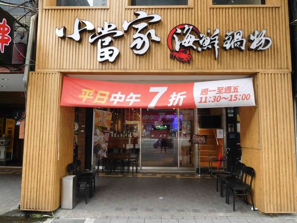 位於 捷運中山國小站 步行一分鐘 ,外面高掛著平日中午的優惠 ,小當家海鮮鍋物 平常的價錢就非常實惠了 !!