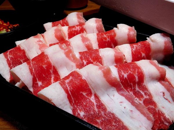 當天鴨子選了兩盤肉品 ,分別為 梅花豬 與 牛培根