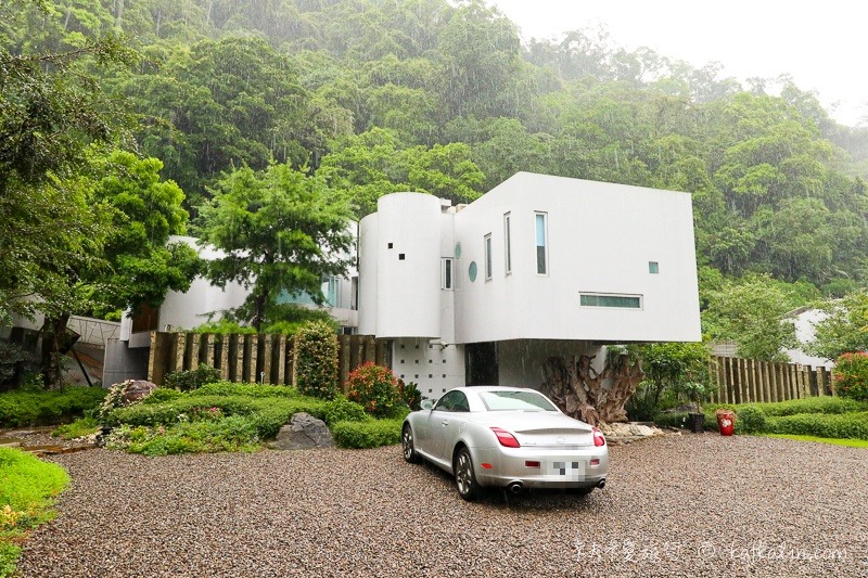 山雨欲來的雷陣雨是夏季午後的主旋律,穿越礁溪山林間的道路,雨滴伴隨雷聲轟然到來,雨點朦朧的視線中,我們在找尋名為有朋會館的山中秘境,車行一陣之後,在美麗的綠色隧道旁,看到有朋會館四個字,車子一開入,管家已在門口迎接我們