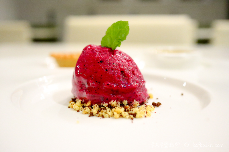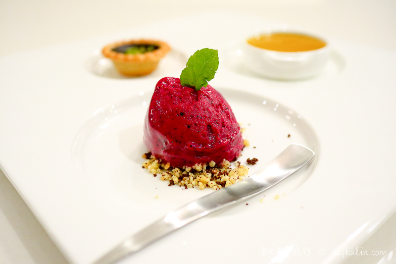 火龍果冰淇淋、芒果蝶豆花奶酪、巧克力塔,先後順序記得先吃芒果碟豆花→巧克力塔→火龍果冰淇淋,味道由輕到重依序品嘗