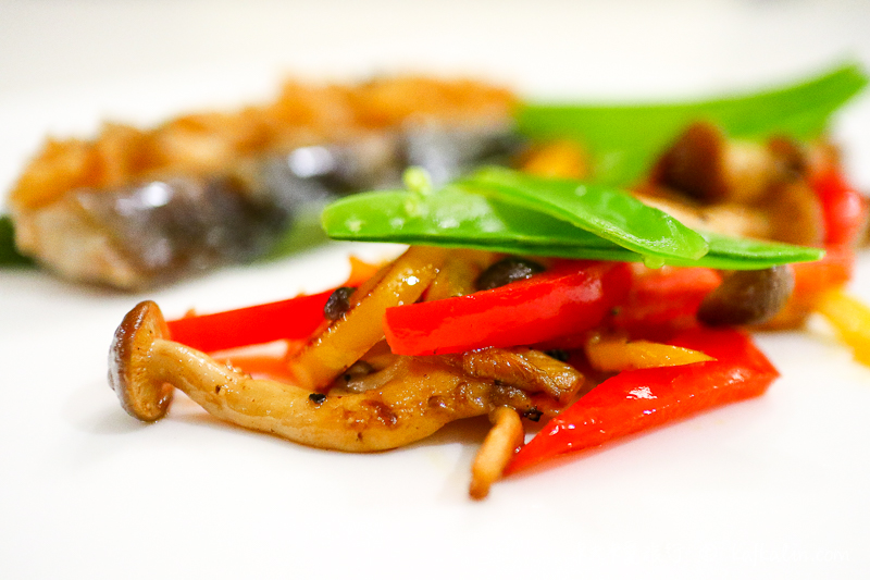 黑胡椒拌炒的菇及彩椒,卡夫卡還是最愛新鮮蔬菜了