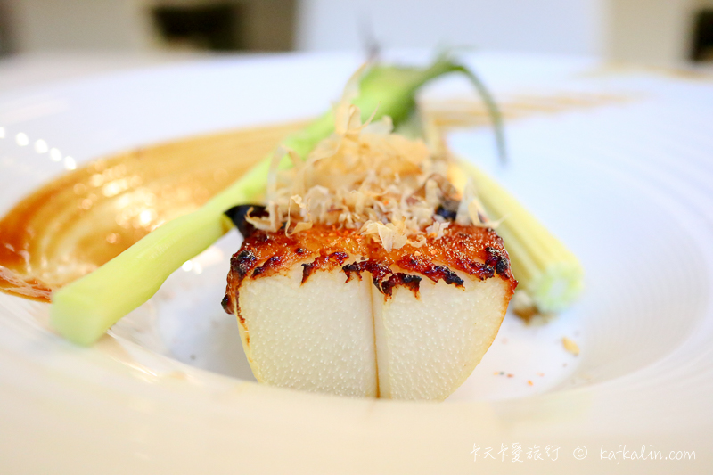 廚師會依照需求去調整菜色,每季會有不同的食材,使用在地食材,法式的手法,在卡夫卡到來之前有朋就有打電話來詢問是否有飲食禁忌並說明用餐時間等相關事宜,這點超貼心的