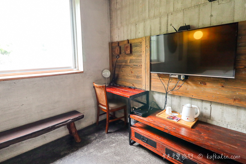 房價都有包含兩客主廚尋味料理,客房內部以清水模為主體,搭配上簡約的木質調與樸質的古家具、農具點綴,很特別的住宿體驗