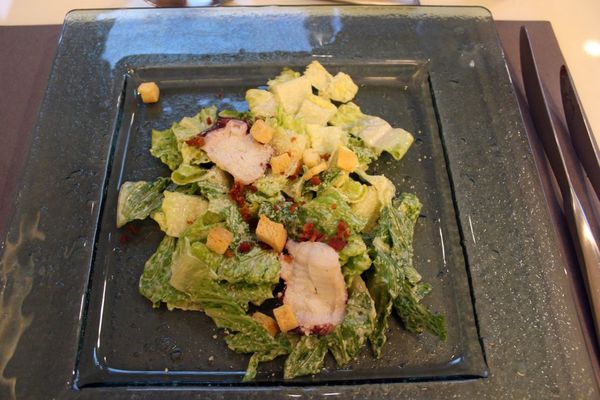 用碳烤章魚取代常見的雞胸肉,可惜章魚沒有保留到炭烤香氣,也略顯韌口。