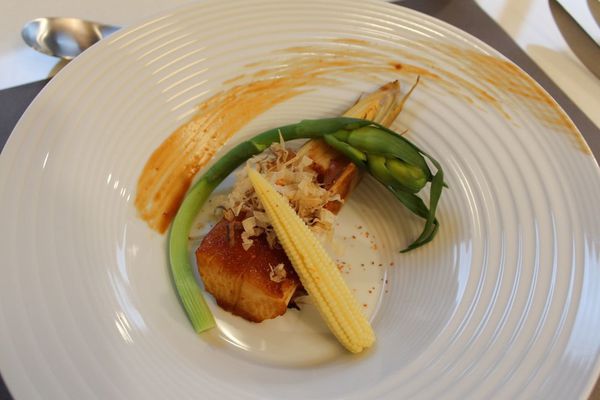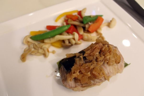 主菜-月桃蔭瓜蒸鱘魚排搭奶油時蔬蕈菇