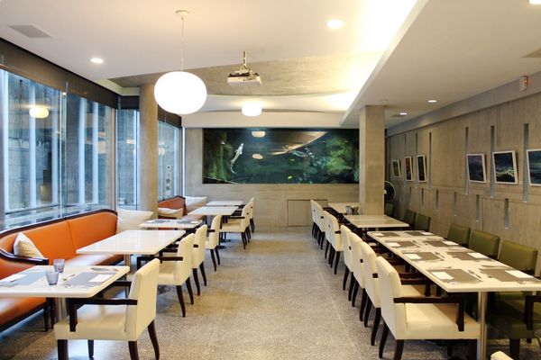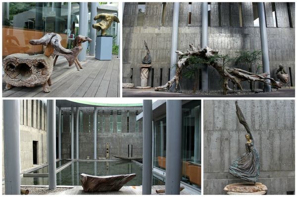 中庭間留白了一個大水池,周邊擺置了許多藝術品。