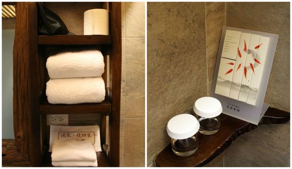 所有備品的外盒排列擺飾成一幅悠游錦鯉的圖畫,感受到民宿的用心。