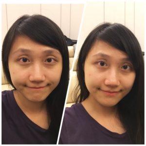 左邊擦了複方高效保濕精華液,右邊沒有擦