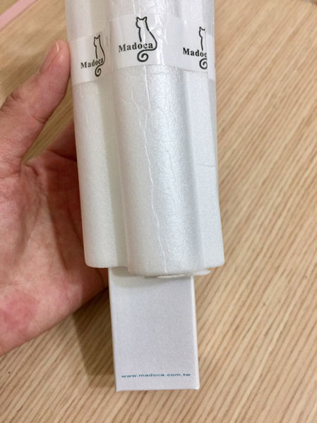 外包裝為珠光白與珠光藍搭配優雅代表~貓咪,Madoca瑪朵卡秉持一貫的簡約包裝。