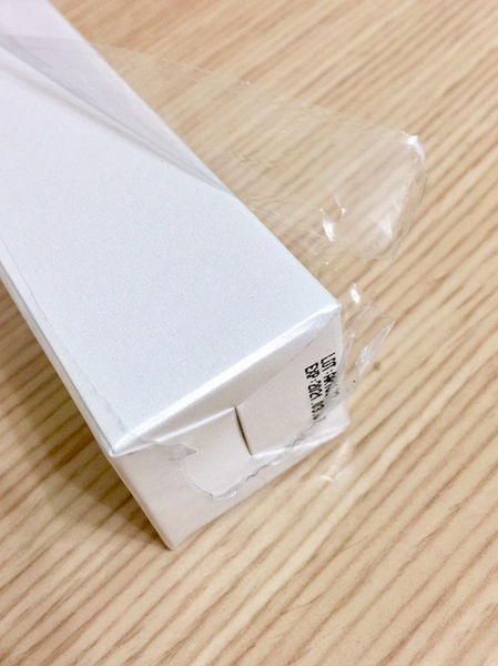 包裝盒外層包裹著厚且硬的封膜,從底部便可輕易拆除。