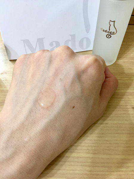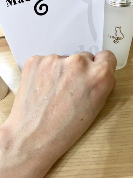 『Madoca瑪朵卡 複方高效保濕精華液』呈透明液狀,質地略稠,無色素、100%無酒精、不含人工色素、無香精,雖然沒有使用任何香精,却也沒有出現可怕的怪味。