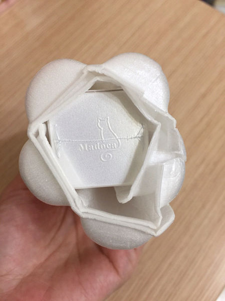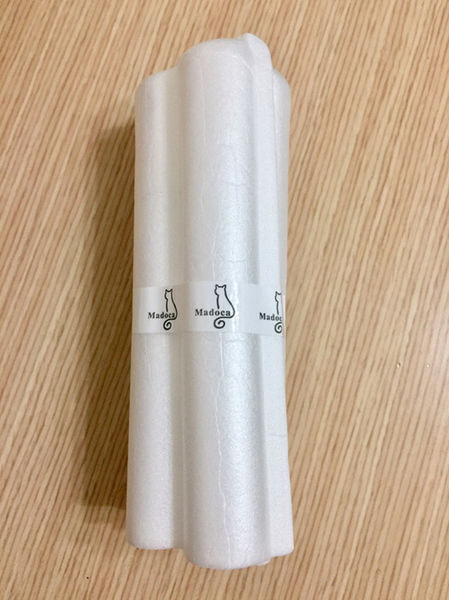 緩衝包材一頭穩穩卡住保養品,一頭並沒有完全封住,一開始我還傻傻的沒發現,準備用剪刀剪開可愛的貓咪,其實只要呈傾斜角度,保養品就完整呈現了。