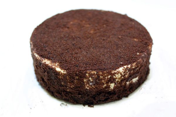 外盒內的蛋糕還用白紙包裹起來,展開後是一顆灑滿巧克力粉的圓形蛋糕。