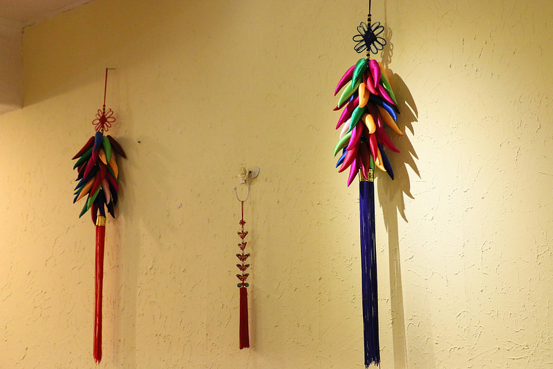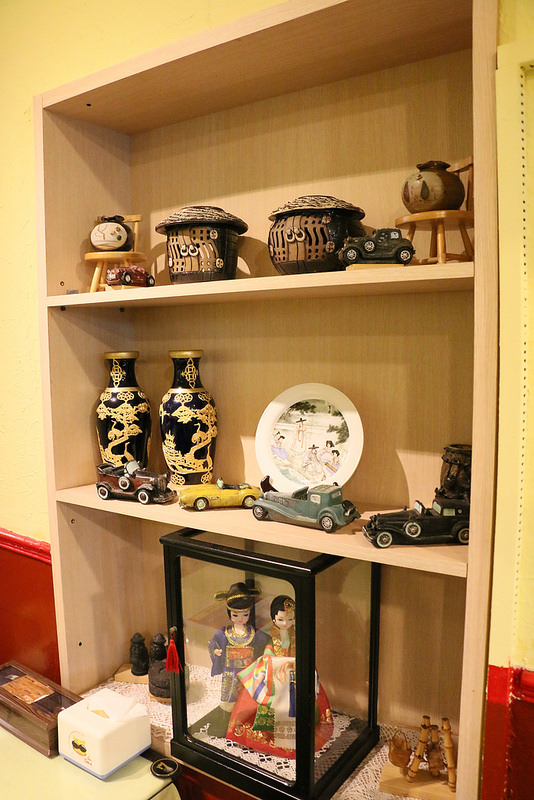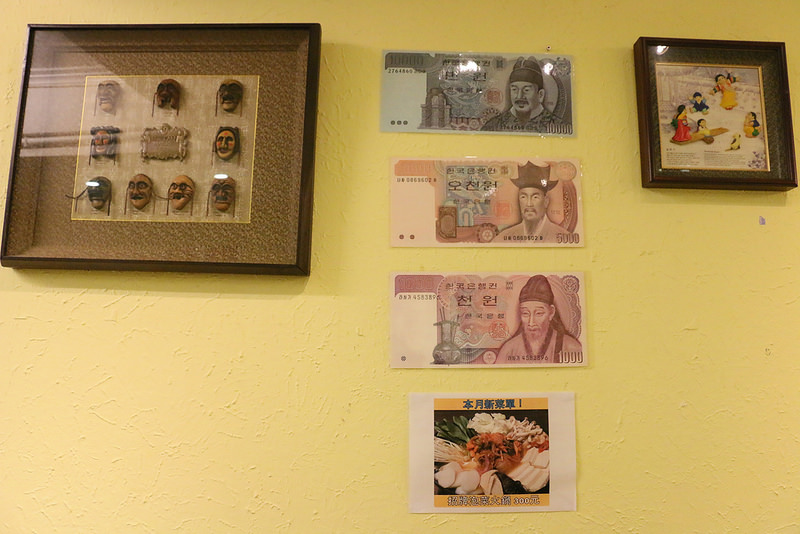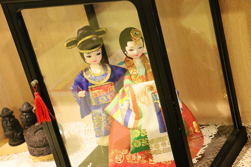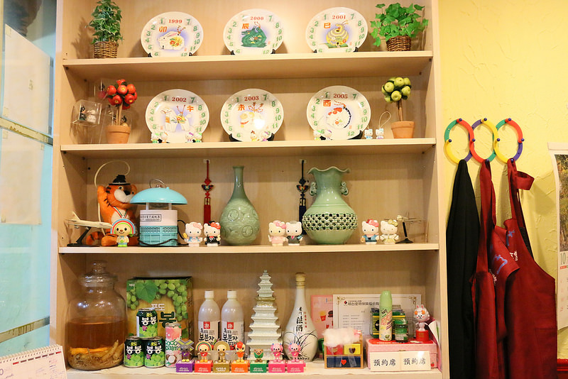 牆上有許多韓國的裝飾品