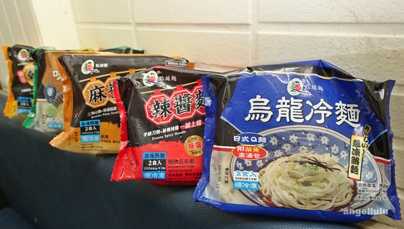 目前有附醬料包的急凍麵共有五種口味,油蔥乾拌麵、味噌拉麵、烏龍冷麵、辣醬麵、麻醬麵