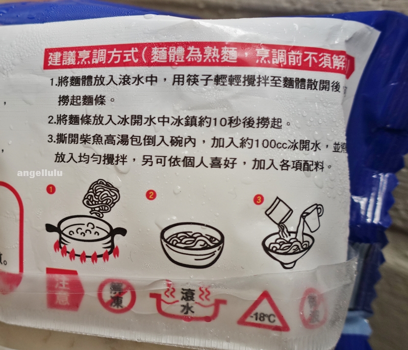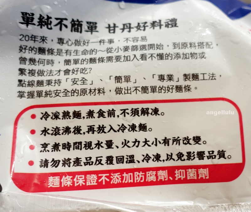 因為是冷凍麵,所以不須解凍、不添加防腐劑、水滾後再放入麵體即可,