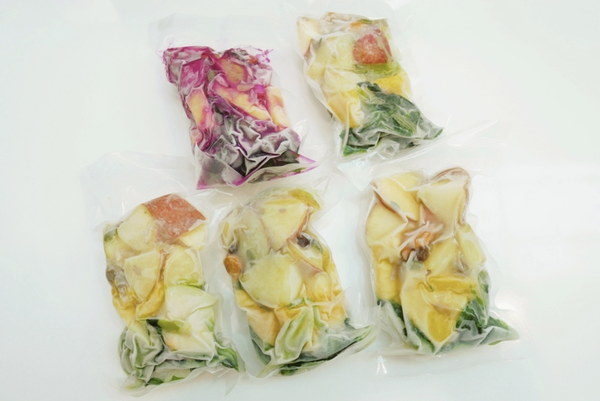 如果是將打好的果汁宅配,會有新鮮度保存的問題,所以 V.G BOOM 採用了冷凍真空的「鮮凍包」