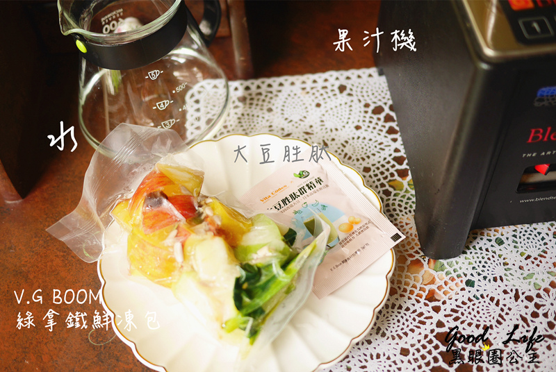《飲品》V.G BOOM 宅配綠拿鐵鮮凍包 ★冷凍真空包保存新鮮,全素蔬果汁一包營養均衡只要一分鐘現打現喝超養生❤ 黑眼圈公主 ❤