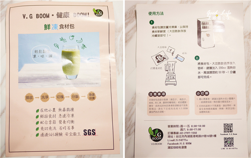 V.G BOOM 綠拿鐵鮮凍包,整杯果汁的風味無法挑剔外,有機葉菜也是營養滿分…