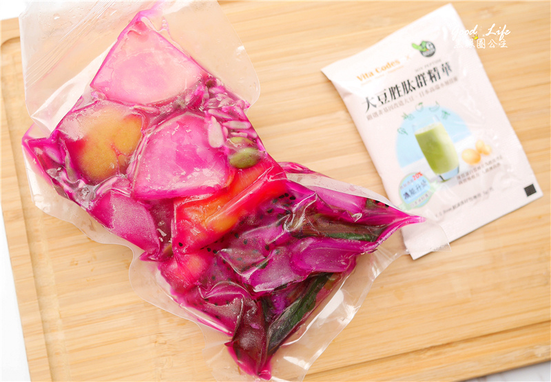 於是便研發製作了『鮮凍包』,只要2分鐘,在家裡就能喝到健康的綠拿鐵,而且省去了採買備材的時間,這對於生活忙碌的人可是一大福音。