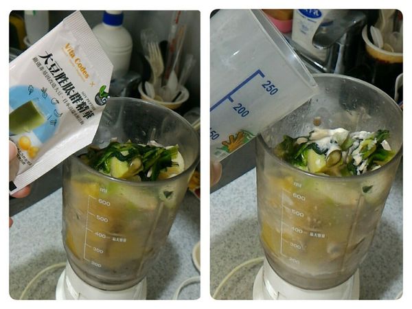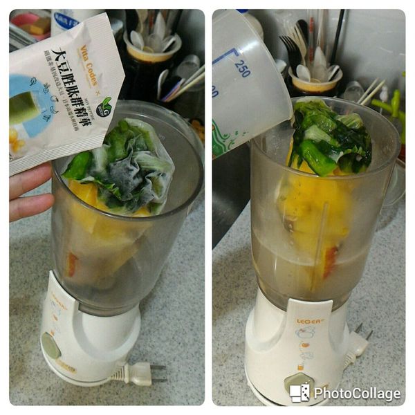 將食材直接放入果汁機, 再加入大豆胜肽群精華